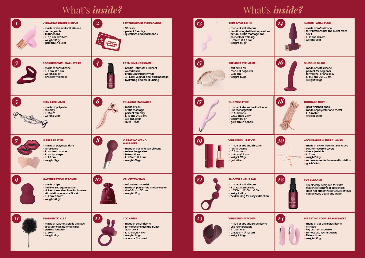 Gerðu mánuðinn enn meira spennandi. Dagatalið kemur með 24 pökkum svo hægt er að prófa eitthvað nýtt á hverjum degi. Mjög hentugt fyrir einstaklinga eða pör sem hafa gaman af því að prófa nýja hluti.