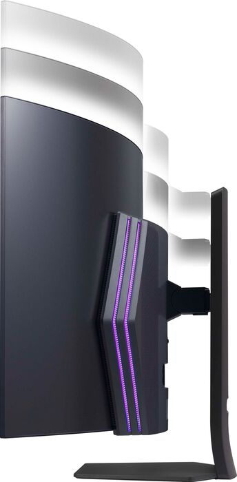Stór 45" boginn OLED skjár með 3440 x 1440 upplausn og 21:9 skjáhlutföll.