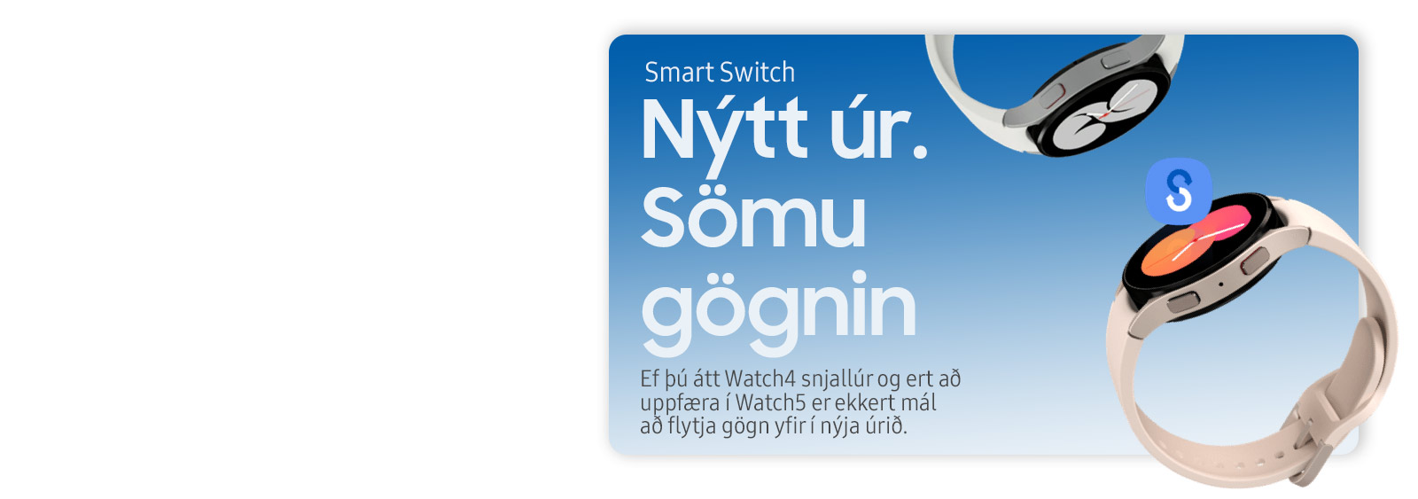 Samsung Galaxy Watch 4 og 5 nota Wear OS stýrikerfi frá Google og möguleiki að setja upp Google Wallet í úrið. Google Wallet er í boði hjá flestum bönkum landsins, kannaðu hvort bankinn þinn bjóði upp á Google Wallet fyrir sína viðskiptavini.