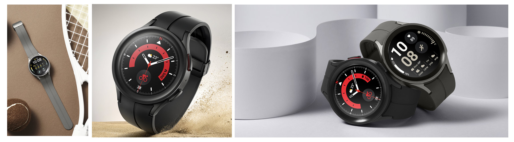 Galaxy Watch5 Pro er stílhreint, hringlaga 45 mm úr. Á hlið úrsins eru tveir hnappar. Úrið er útbúið títaníum ramma sem nær uppfyrir skjáinn. Skjárinn á úrinu er Sapphire Crystal sem er allt að 60% rispuþolnara en forverar þess. Með úrinu kemur þægileg og létt sílíkon ól.